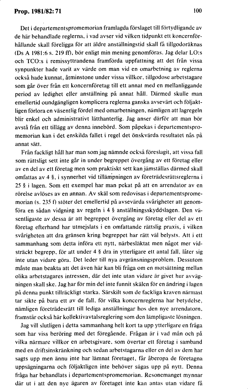 Förarbeten : Prop. 1981/82:71 om ny anställningsskyddslag m.m.