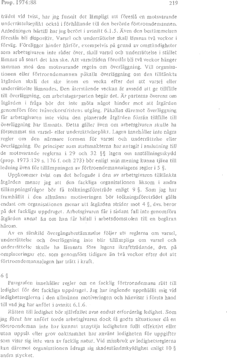 Förarbeten : Prop. 1974:88 med förslag till lag om facklig förtroendemans ställning på arbetsplatsen m.m.