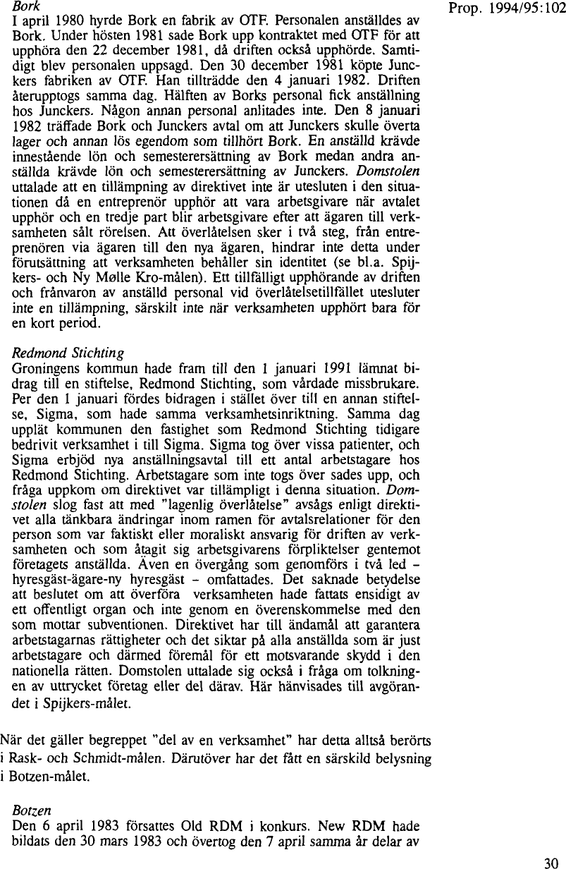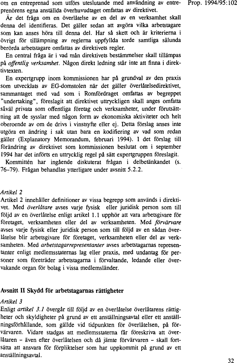 Förarbeten : Prop. 1994/95:102 Övergång av verksamheter och kollektiva uppsägningar