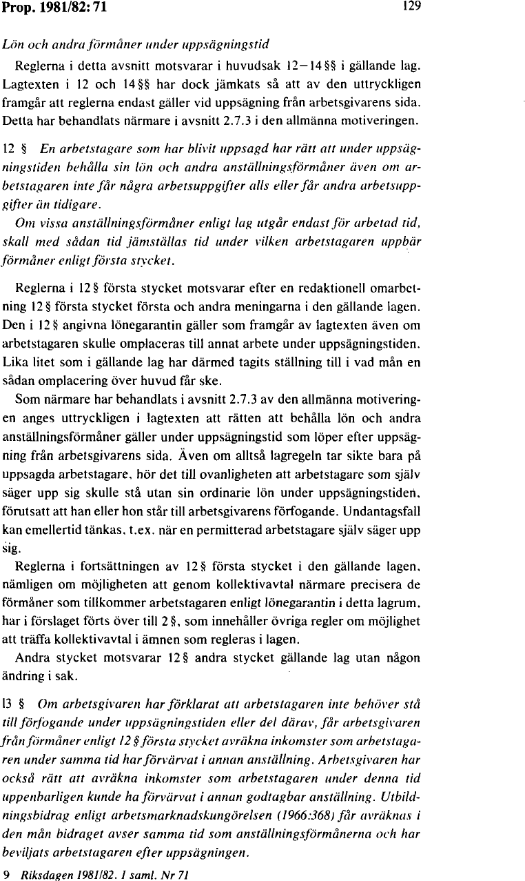 Förarbeten : Prop. 1973:129 med förslag till lag om anställningsskydd m. m. | Prop. 1981/82:71 om ny anställningsskyddslag m.m.