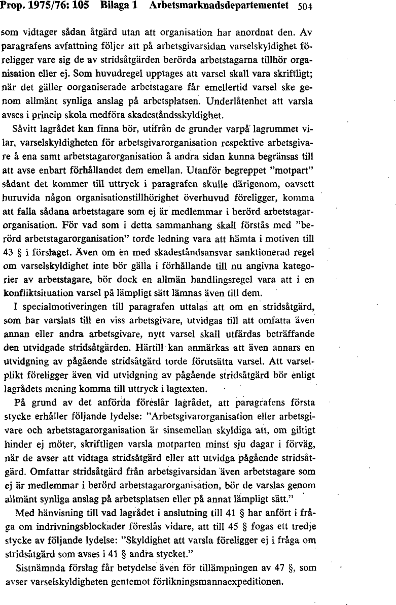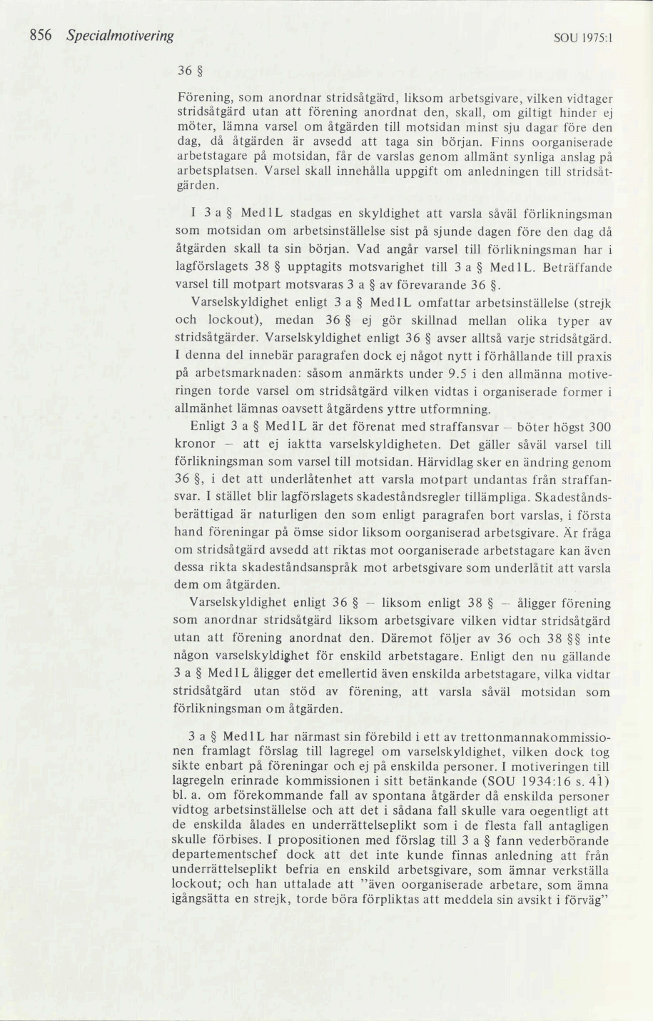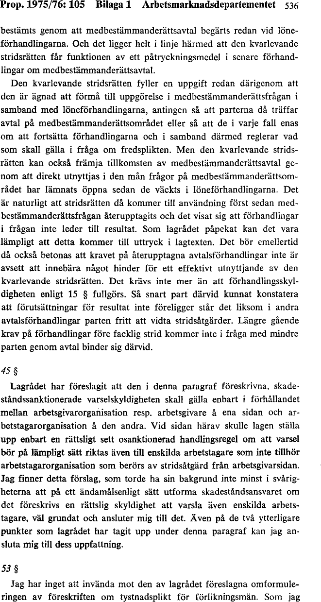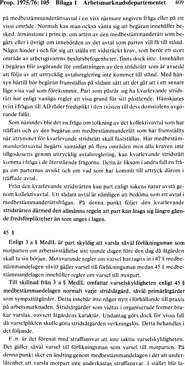 Förarbeten : Prop. 1935:32 med förslag till lag angående tillägg till lagen den 28 maj 1920 (nr 245) om medling i arbetstvister | Prop. 1975/76:105 med förslag till arbetsrättsreform m.m. | Prop. 1999/2000:32 Lönebildning för full sysselsättning | SOU 1934:30 Utlåtanden över Betänkande med förslag till lag angående vissa ekonomiska stridsåtgärder m. m. (Trettonmannakommissionens betänkande) | SOU 1975:1 Demokrati på arbetsplatsen – Förslag till ny lagstiftning om förhandlingsrätt och kollektivavtal
