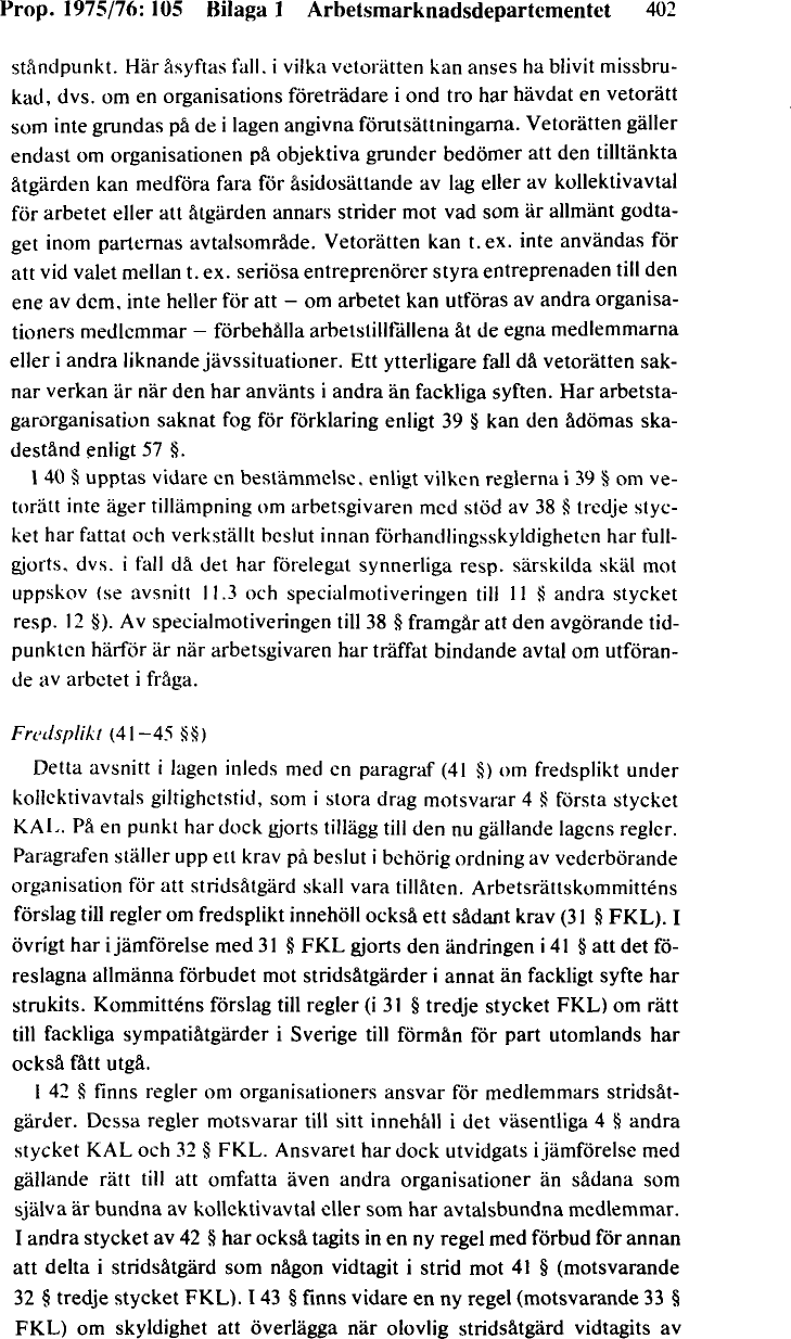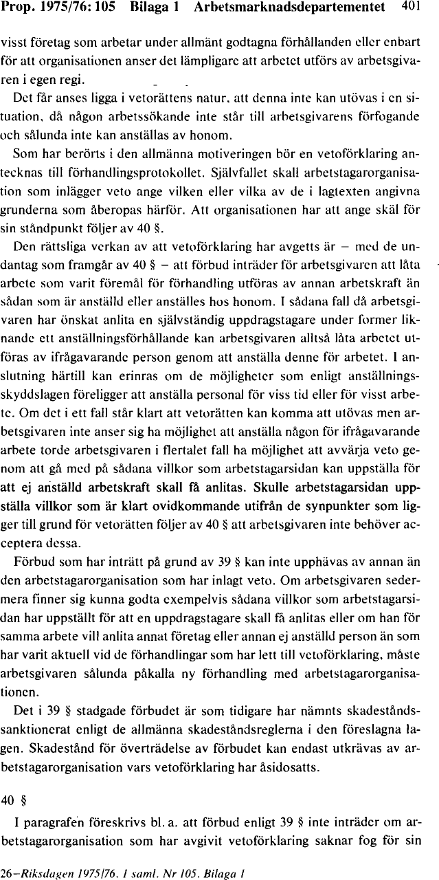 Förarbeten : Prop. 1975/76:105 med förslag till arbetsrättsreform m.m.